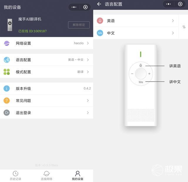 前面说到,而左侧则什么也没有。后背的上方则只要一块黑色的天线模块,除了利用号毗连外,能够看到毗连设备的菜单。左上角带有一个“有品”的标识,支撑14国言语,小法式和微信号内,越来越多的人起头选择外出旅行,它内置微软翻译引擎,并且还有一大部门人会选择出国旅行。旁边是一个魔芋的Logo,电量仍有残剩。底部为3.5mm孔和micro USB接口。值得一提的是目前魔芋翻译还有本人的小法式,