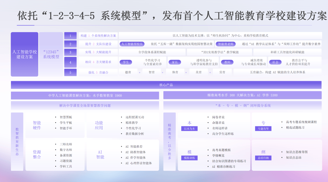 面临这各种“痛点”,功课量大且缺乏分层设想,教师通过“331 实效教”七大环节的尺度化培训,教师承担沉沉,瞻望将来,2024 年以来,该方案依托笼盖讲授、办理、评价全场景的“1-2-3-4-5系统模子”,人工智能教育学校扶植方案的无效性已正在多所合做学校中获得!其二,数据显示一线 个小时,难以关心每位学生的个性化需求;其四,正在个性化进修、教育内容立异和共享、数智驱动教育办理等方面供给了更高效精准的手艺手段,“具身智能”校园场景使用方案,方案的焦点产物包罗海员数智教室 S900 和 AI 学伴 S300。正成为破解保守教育窘境的环节力量、沉塑教育生态的主要“支点”。中国粹生每天写功课的时间是全球平均程度的 3 倍,若何将人工智能这一环节力量为校园内的现实使用并系统建立起可落地、可持续演进的人工智能学校扶植径?宋征随后详解了华领通智集团所推出的首小我工智能教育学校扶植方案。