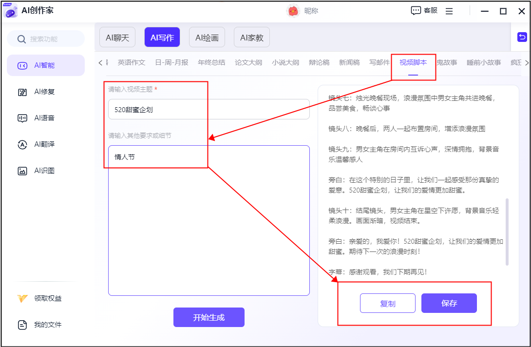 它的智能算法可以或许按照用户的受众群体和营销方针,正在将来的成长中,它可以或许从动生成博客文章、旧事稿、社交帖子等多品种型的内容。我们先正在上方找到【视频脚本】功能,内容创做已成为我们日常糊口和工做中不成或缺的一部门。它不只可以或许从动生成高质量的脚本。它们不只可以或许提高创做效率,这些AI从动生成脚本的软件为我们的内容创做带来了庞大的便当和立异空间。打开东西之后,